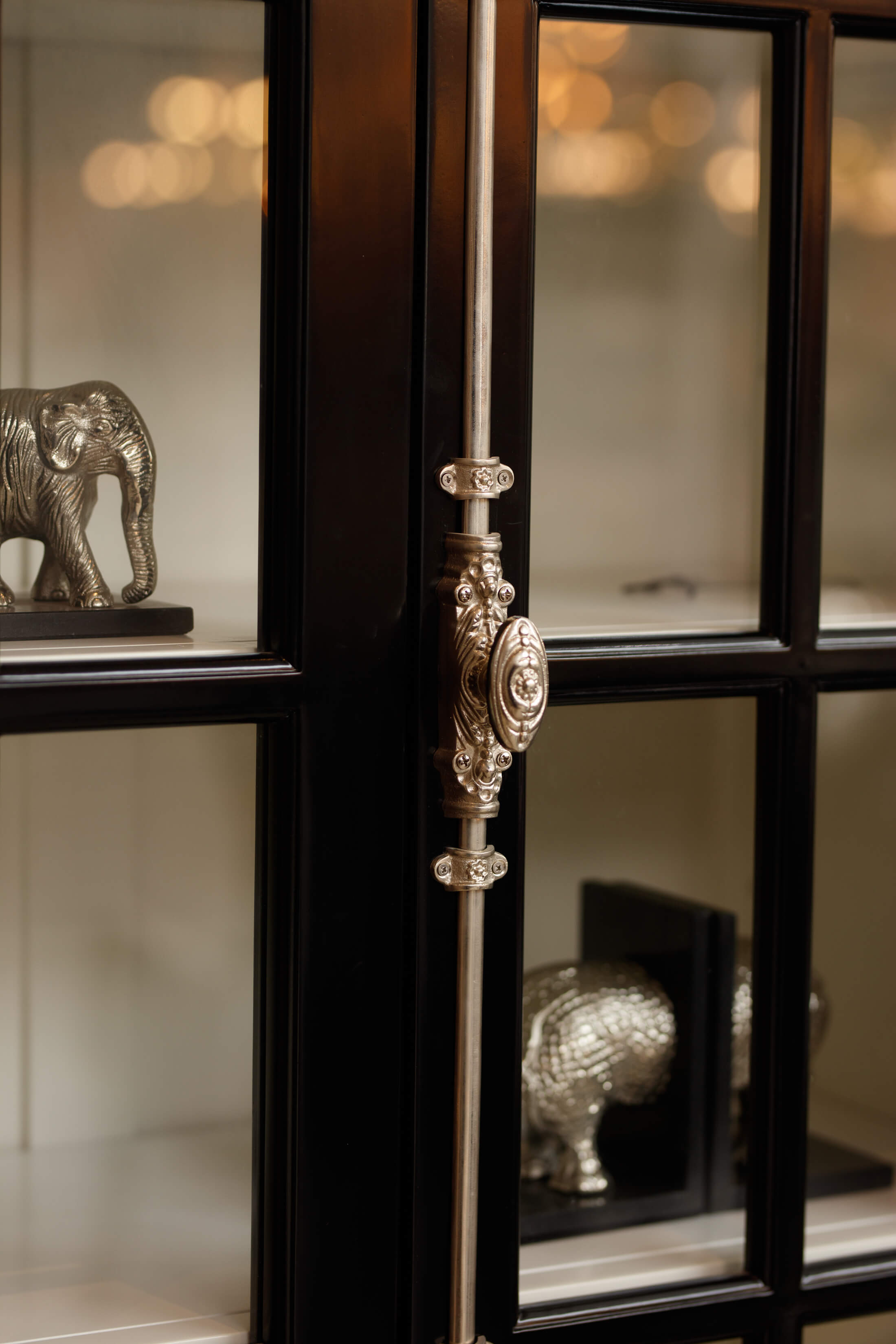 Introducing our Hinton cabinet, a modern interpretation of classic design. Crafted from sleek and sturdy mahogany with a refined black finish, this cabinet features four doors that provide ample display and storage space. Perfect for any luxury home, the Hinton cabinet seamlessly blends contemporary elegance with traditional charm, making it a standout piece in any interior.