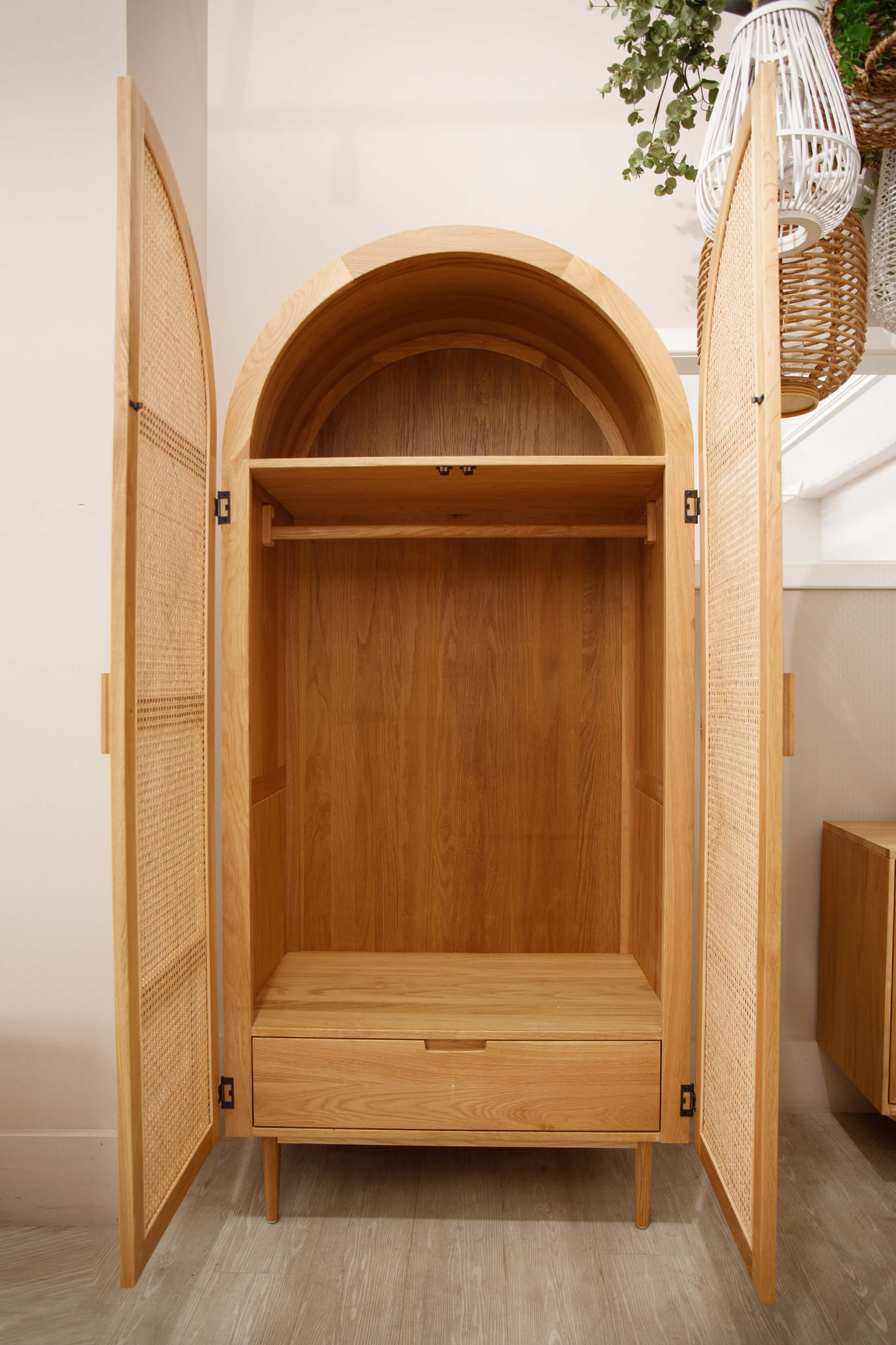 Introducing our Lowell cabinet, featuring an elegant arched structure crafted from oak wood. The doors are adorned with intertwined rattan fronts, adding a touch of sophistication. Its minimalist design creates a striking focal point, while the natural elements enhance warmth and texture. Elevate your living space with this luxurious and stylish piece.