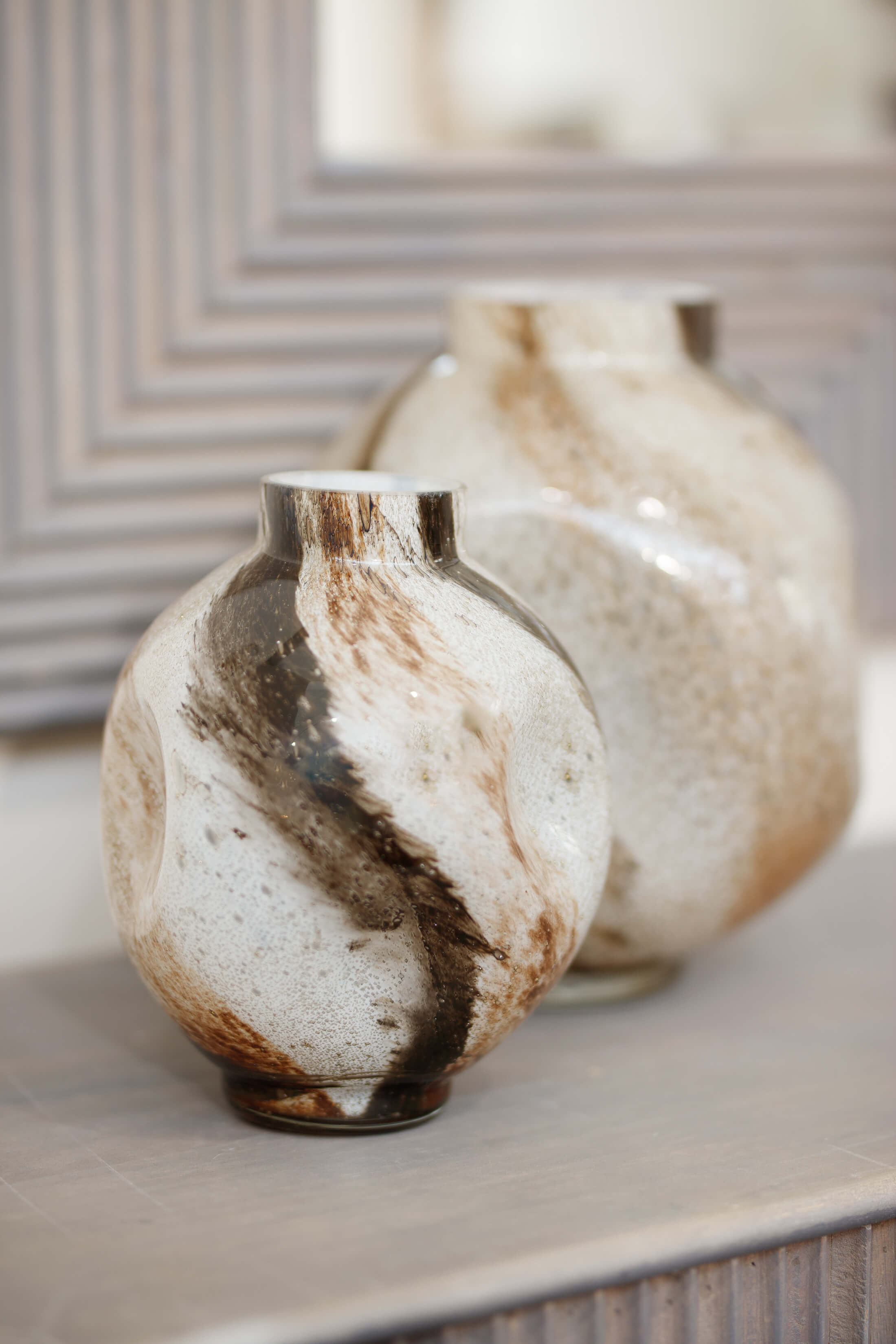 Introducing our Shere Small Vase, designed to bring an earthen appeal and organic charm to your living space. Expertly crafted from robust glass and supported by a round plinth base, this vase is a versatile masterpiece. Whether showcased as a standalone decor piece or adorned with beautiful bouquets, it effortlessly enhances the elegance of any room.