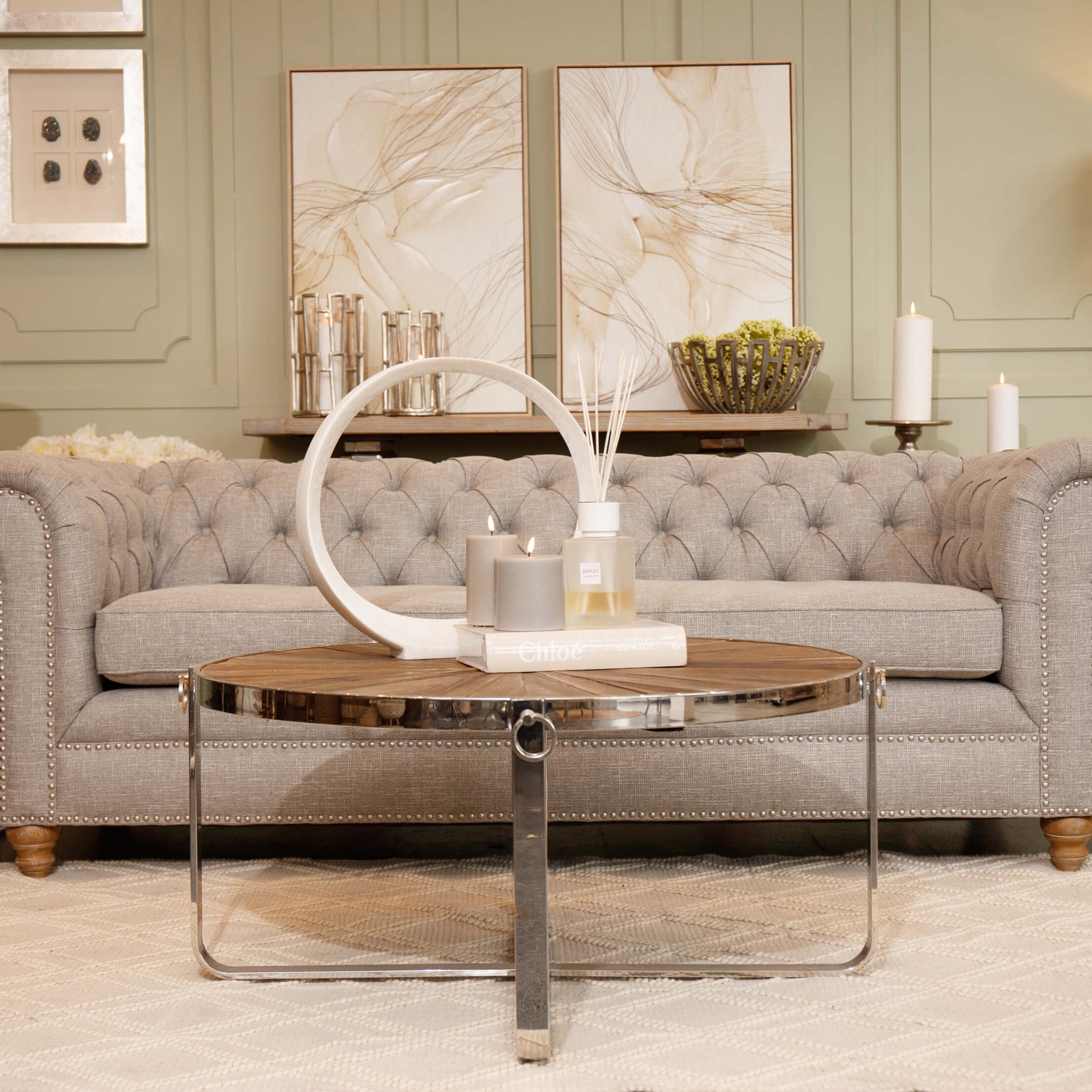 Introducing our Hemel mantel clock, elegantly captured within a metal arch and suspended by a decorative hanging hook. This luxurious piece features a stunning two-tone contrast of silver and antique brass, adding a timeless accent to any quirky desk. Elevate your space with this sophisticated and unique timepiece.