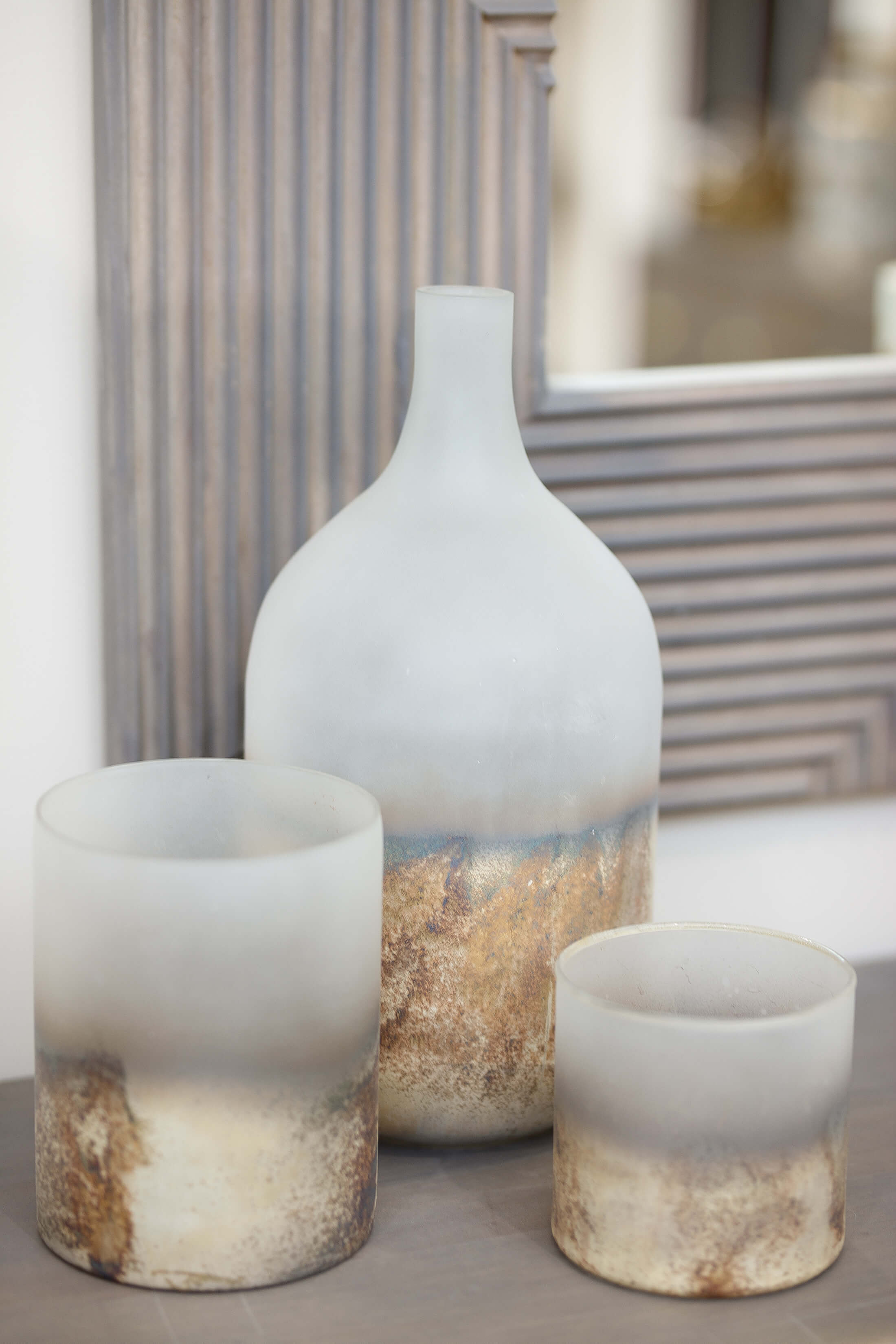 Introducing our Rune handcrafted vase, perfect as a standalone decorative piece or pair as a trio with our Rune Large Candle Holder and Rune Candle Holder. This exquisite glass vase effortlessly blends with both organic and urban-inspired aesthetics. Its minimalistic design features a gently tapering shape towards the top, forming a narrow neck that adds a touch of sophistication to any space. Elevate your home decor with this timeless piece, ideal for any luxury setting.