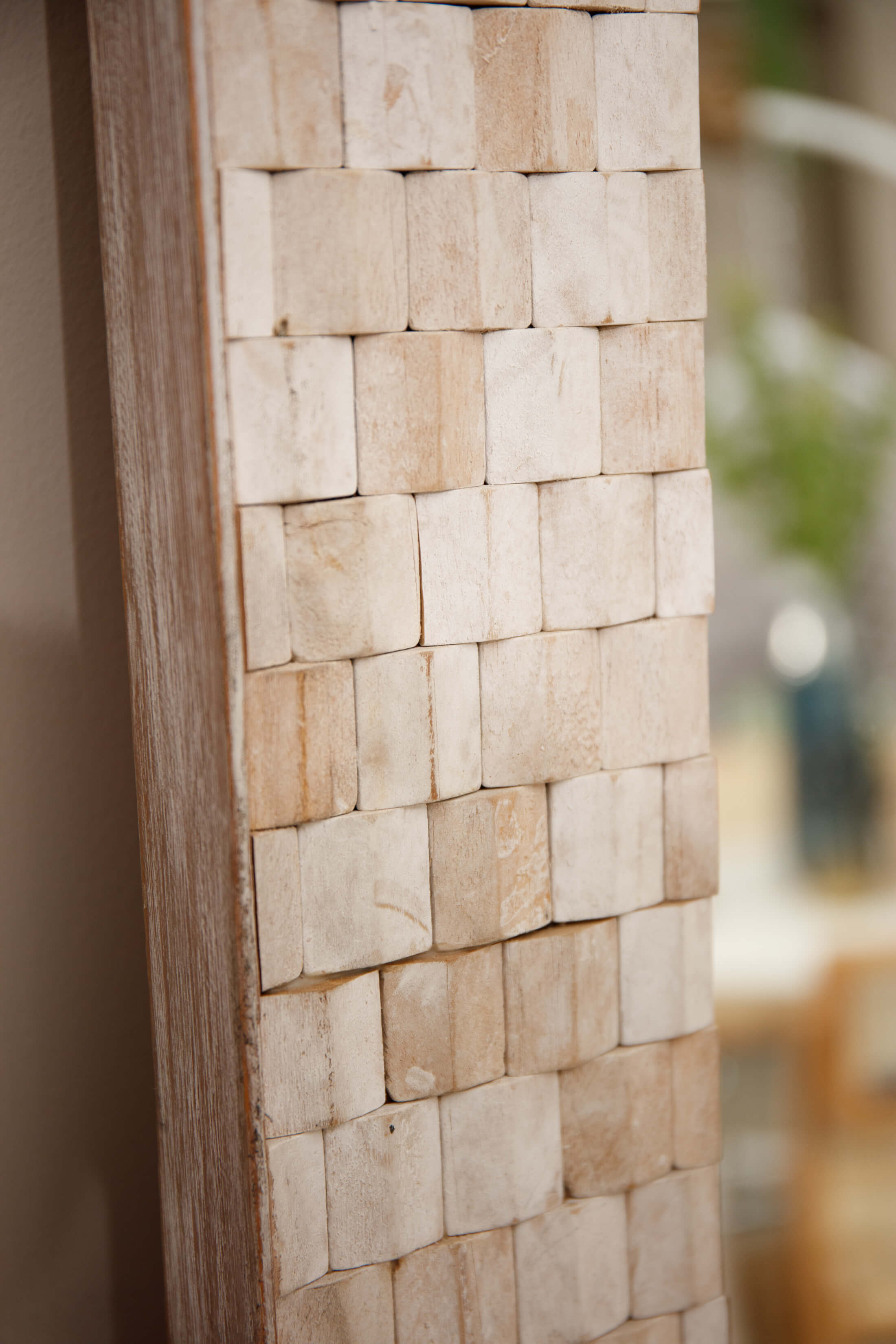 Introducing the Zion Retangualr Wooden Mirror , the rectangular frame is meticulously crafted from a collection of closely packed teak wood tiles, creating a cohesive and elegant look. The mirror glass is slightly recessed into the frame, adding depth and sophistication to this exquisite piece, perfect for enhancing any high-end interior.