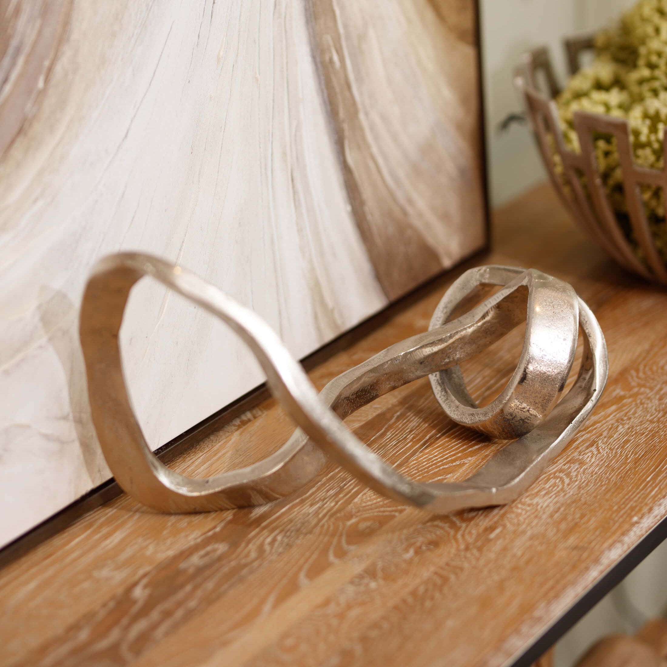 Introducing our Hampsted Silver Knot is handcrafted into an abstract sculpture. The aluminium knot is shaped into an assymetrical design and has silver matte finish to complete the contemporary look. This modern art piece makes an interesting focal point for modern spaces.