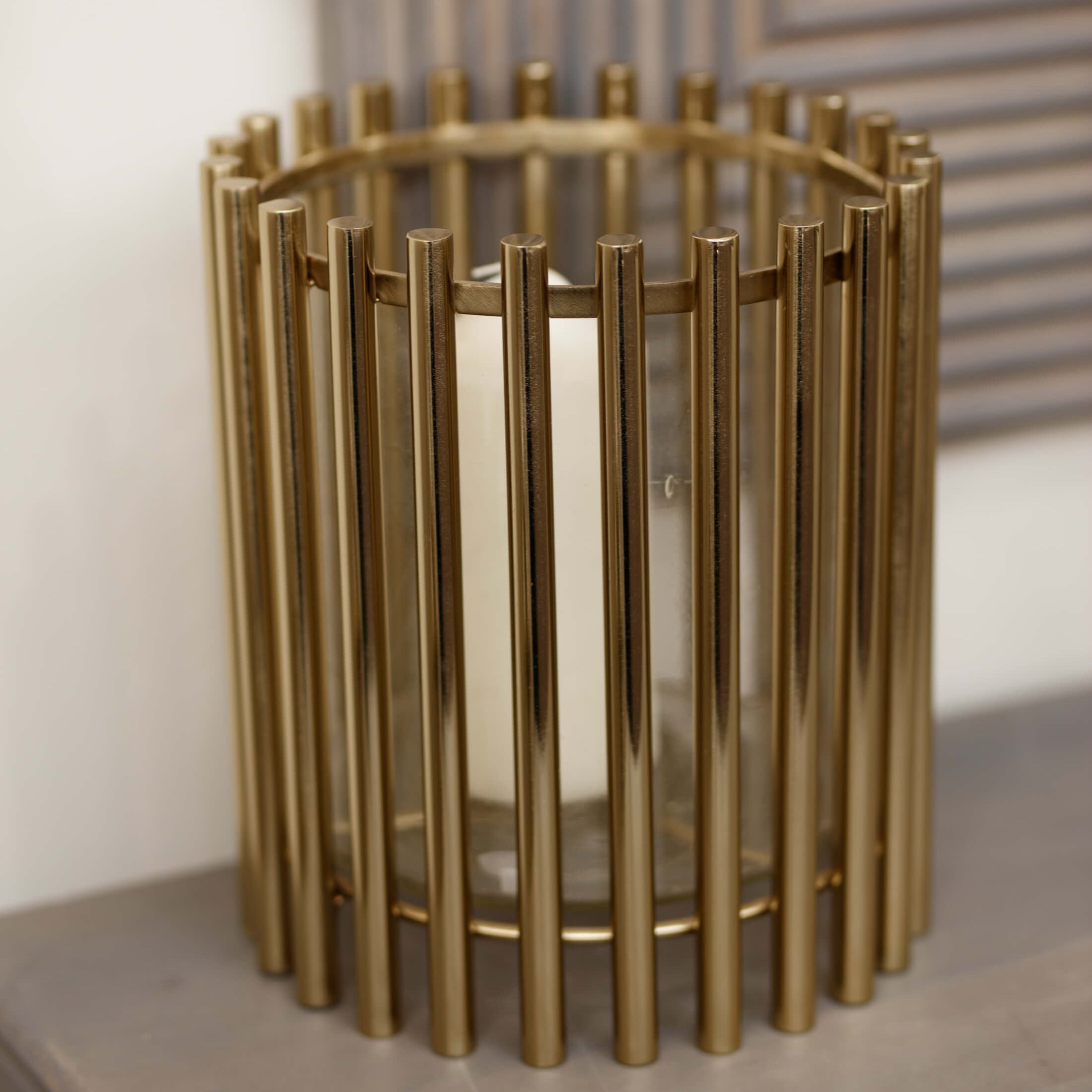 Introducing our Milland Small Candle Holder, our exquisite small candle holder, a contemporary masterpiece meticulously crafted with a round cage design frame featuring vertical metal rods. Within this elegant structure, a circular glass base awaits, providing the perfect foundation for your candle. A harmonious blend of form and function, this piece radiates sophistication