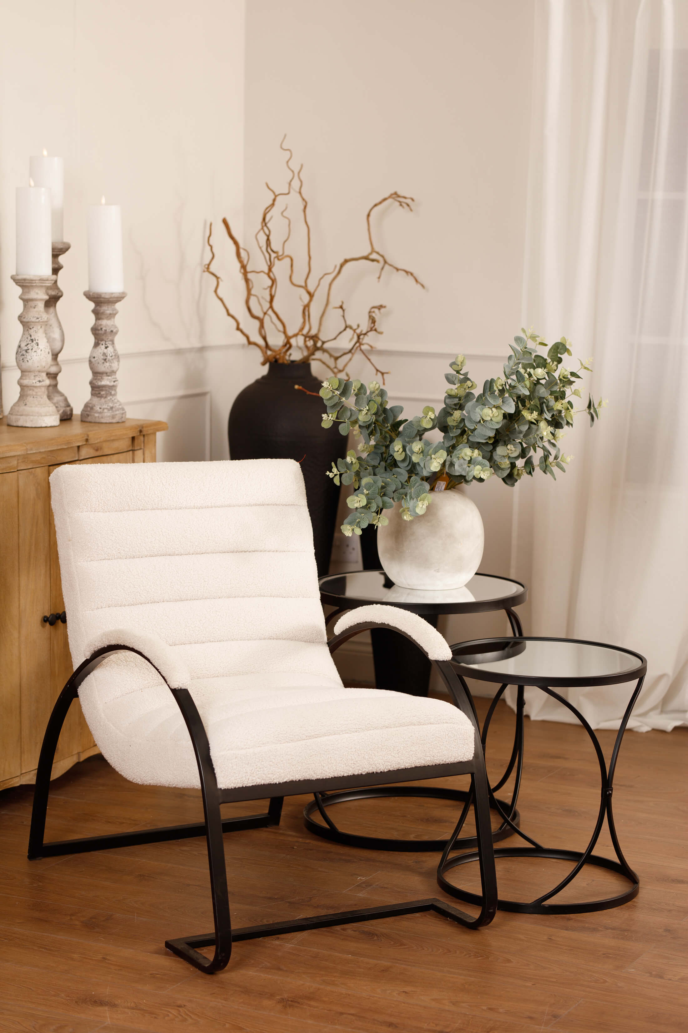 Introducing our Jenner Boucle Ribbed Ark Chair, a perfect blend of sleek lines and a streamlined silhouette. This chair effortlessly complements contemporary decor, making it an ideal addition to modern living rooms, bedrooms, or reading nooks. Its elegant design and luxurious boucle fabric bring a touch of sophistication to any space, ensuring both comfort and style.