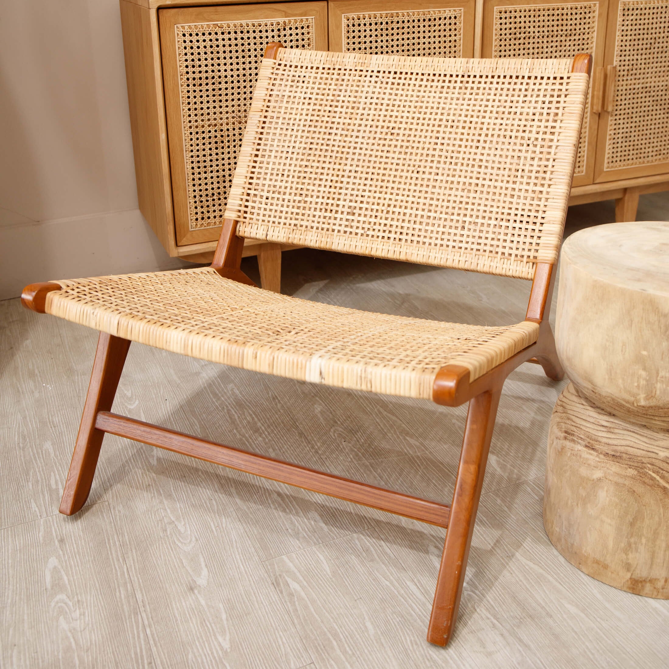 Introducing the Koa Seagrass Chair, crafted from natural teak wood with a rich dark brown finish and gentle grain pattern, this piece offers a wide and inviting platform. The generously sized seat and backrest are elegantly covered in woven natural rattan, providing a comfortable and stylish finish. Perfect for adding a touch of sophistication to any interior.