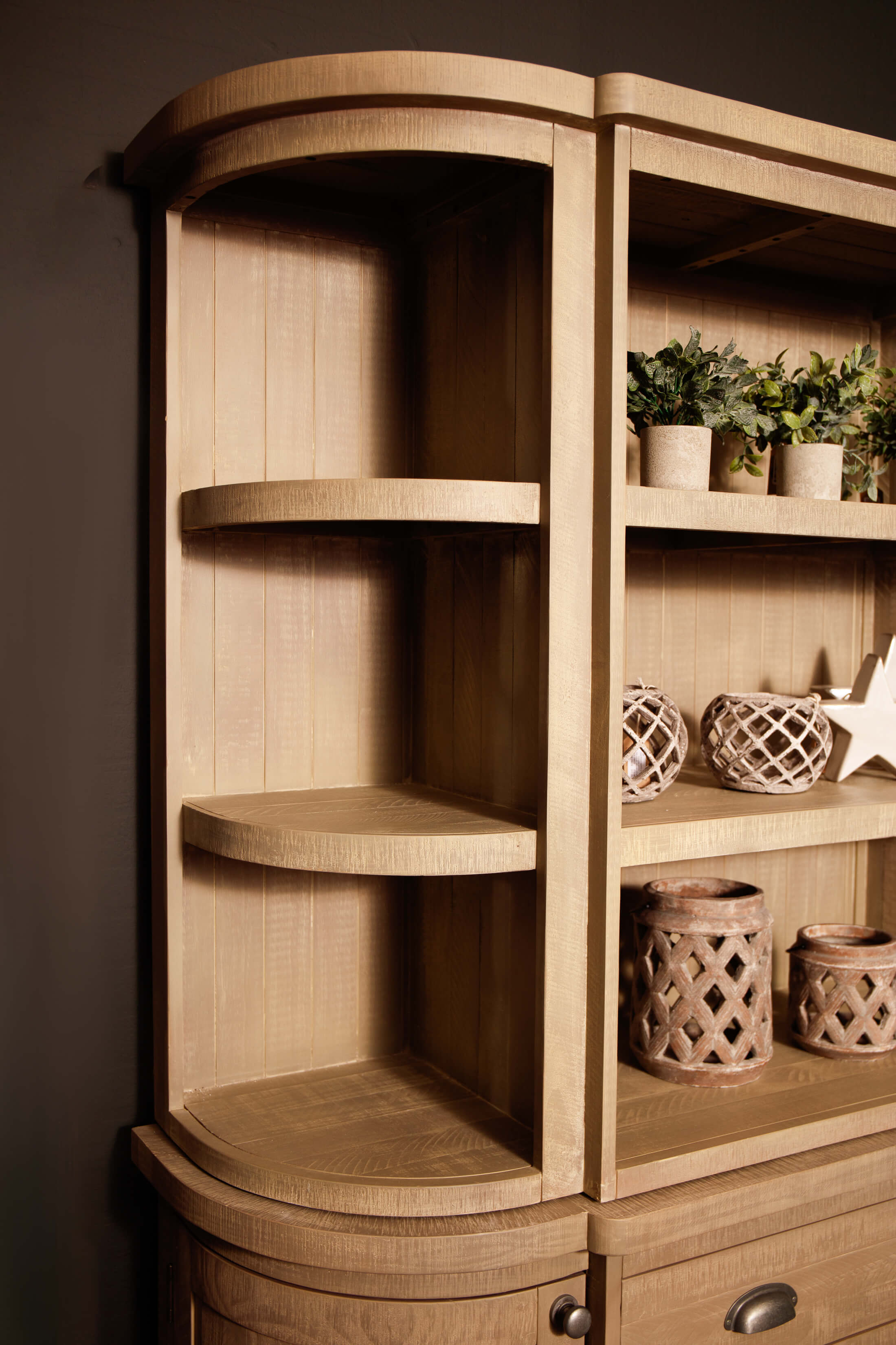 Introducing our Ash Grove Collection 3-Shelf Dresser Top, a versatile piece that shines both on its own and when paired with the Ash Grove 4 Drawer Sideboard. This dresser top features contemporary curved elements with smooth outlines and organic shapes, adding a sense of softness and modern flair while maintaining timeless appeal. Each piece is finished with a treated wood stain, giving it a weathered, familiar look that brings warmth and character to any space.