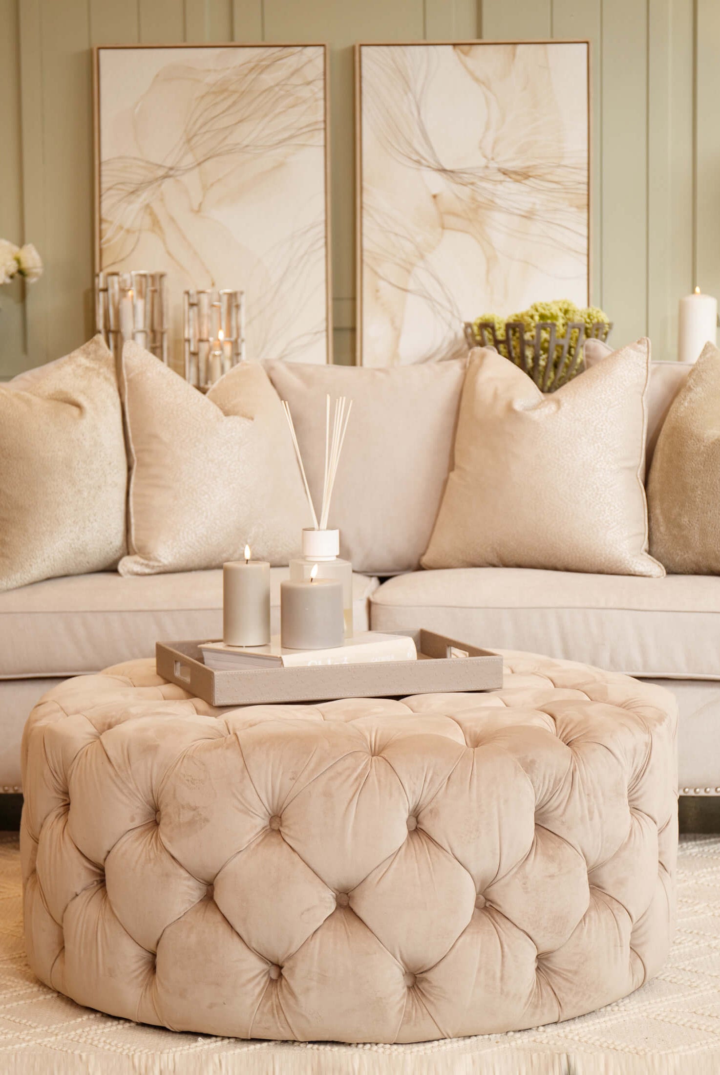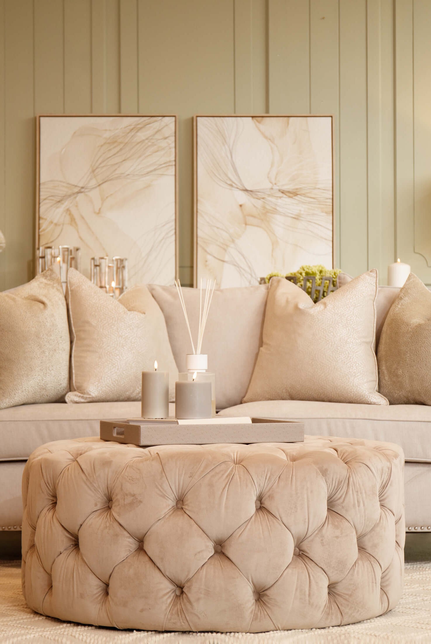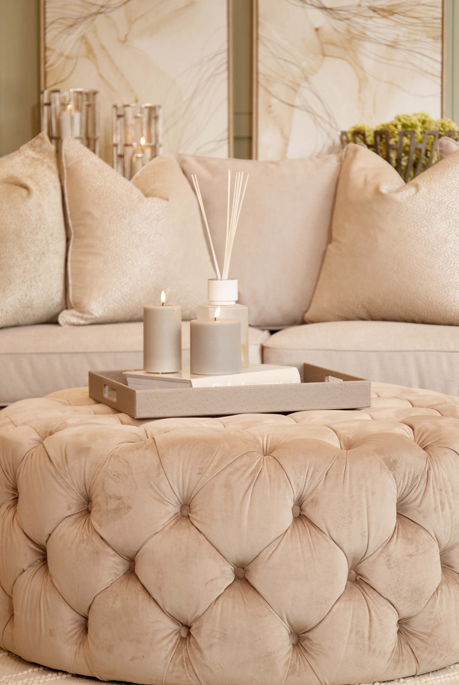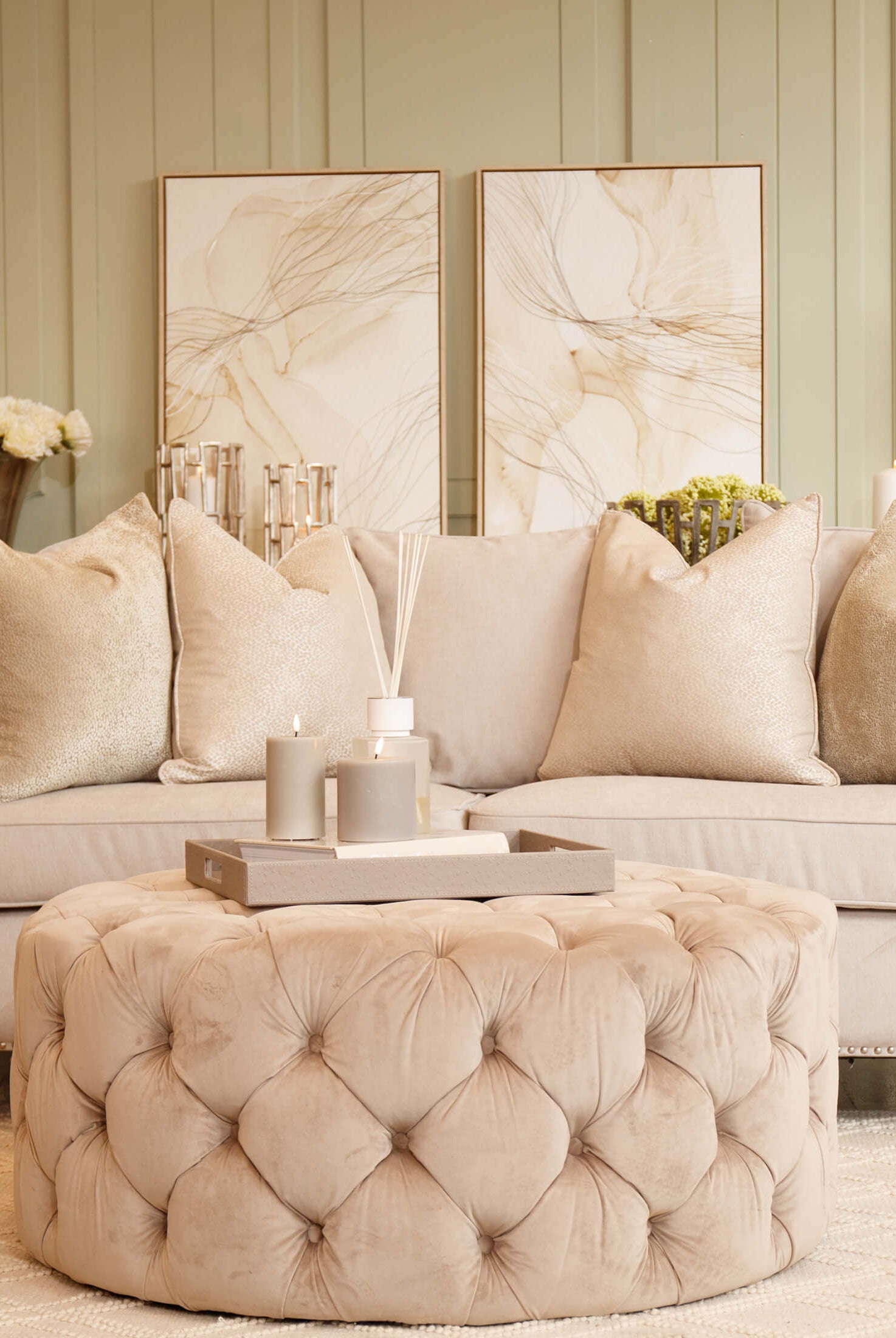 Caden Living Collection is all about creating a space that feels both calming and refined, a perfect balance of tranquility and timeless style. This aesthetic embraces soft, neutral palettes, gentle textures, and understated elegance. Think plush fabrics, clean lines, and subtle metallic touches that catch the light without overpowering the room.