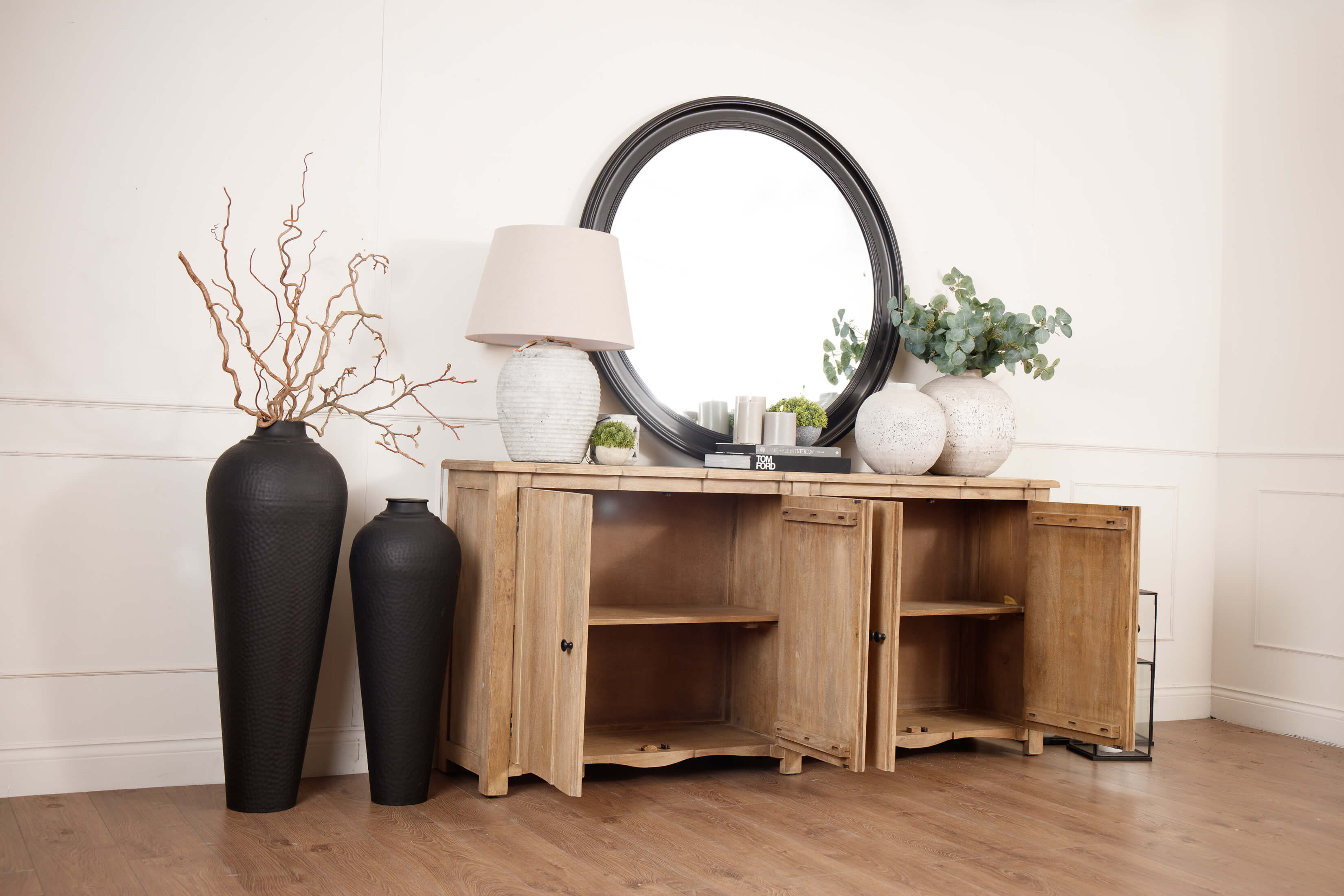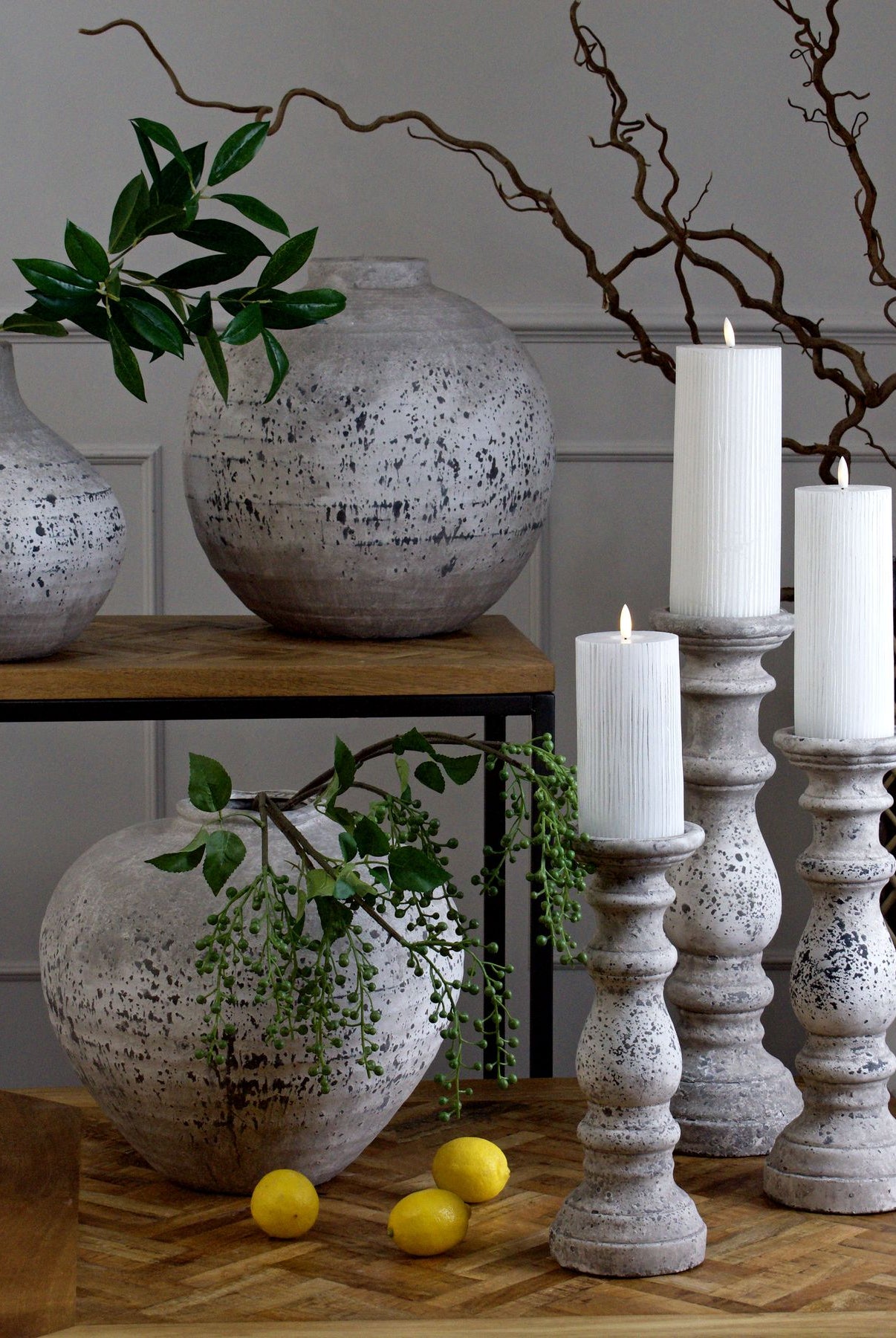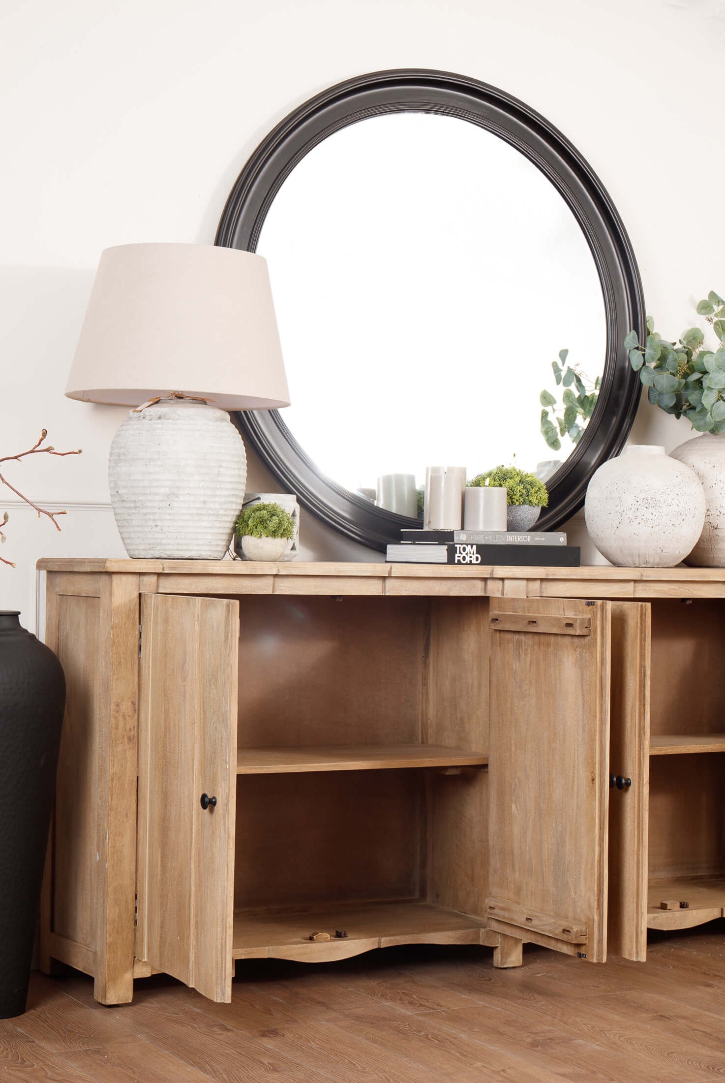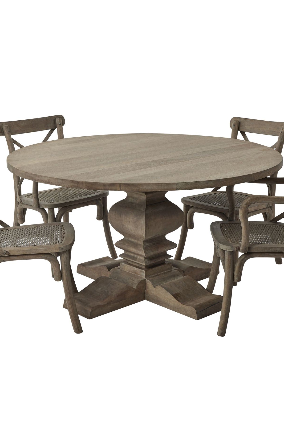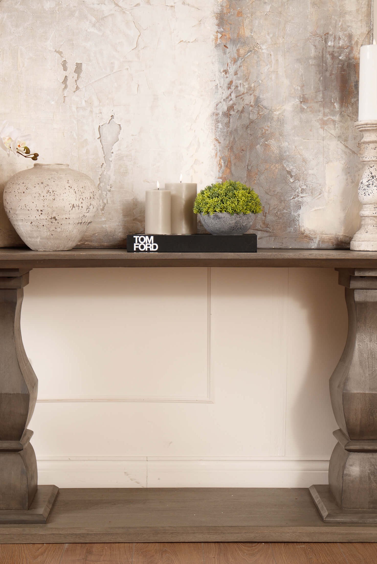 Welcome timeless charm into your dining space with our Sutton collection. Featuring a beautifully crafted round wooden table paired with upholstered dining chairs in a soft, neutral tone, this setting is all about understated elegance and inviting warmth. The look is grounded in earthy textures and elevated with sculptural candleholders, delicate glassware, and graceful floral accents. Soft, filtered light through sheer curtains creates a calm, serene atmosphere, perfect for intimate dinners or relaxed gatherings.