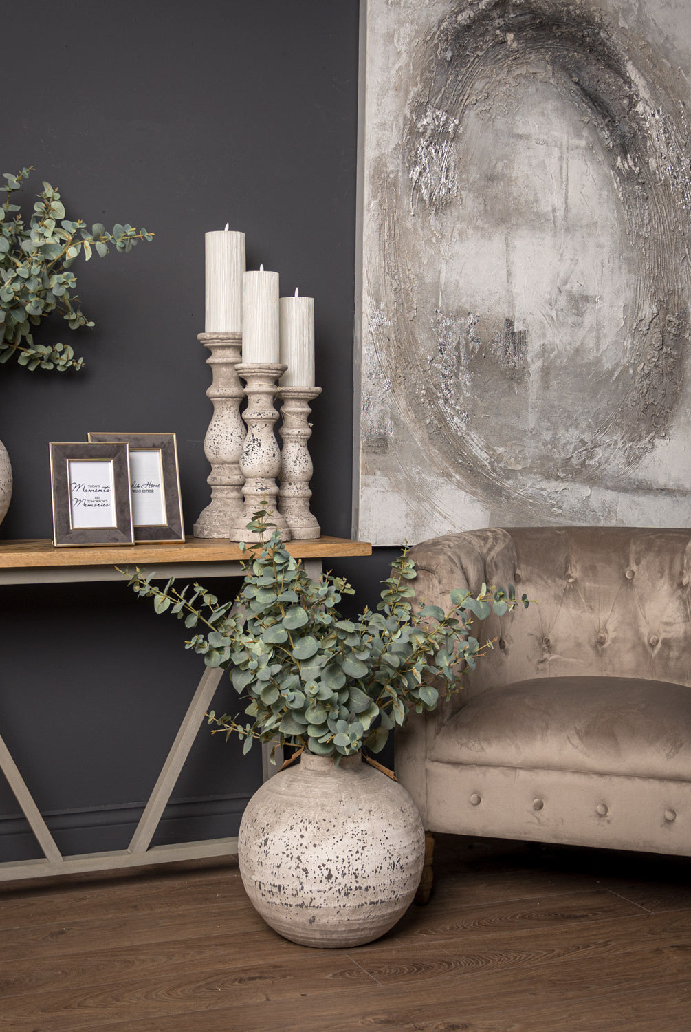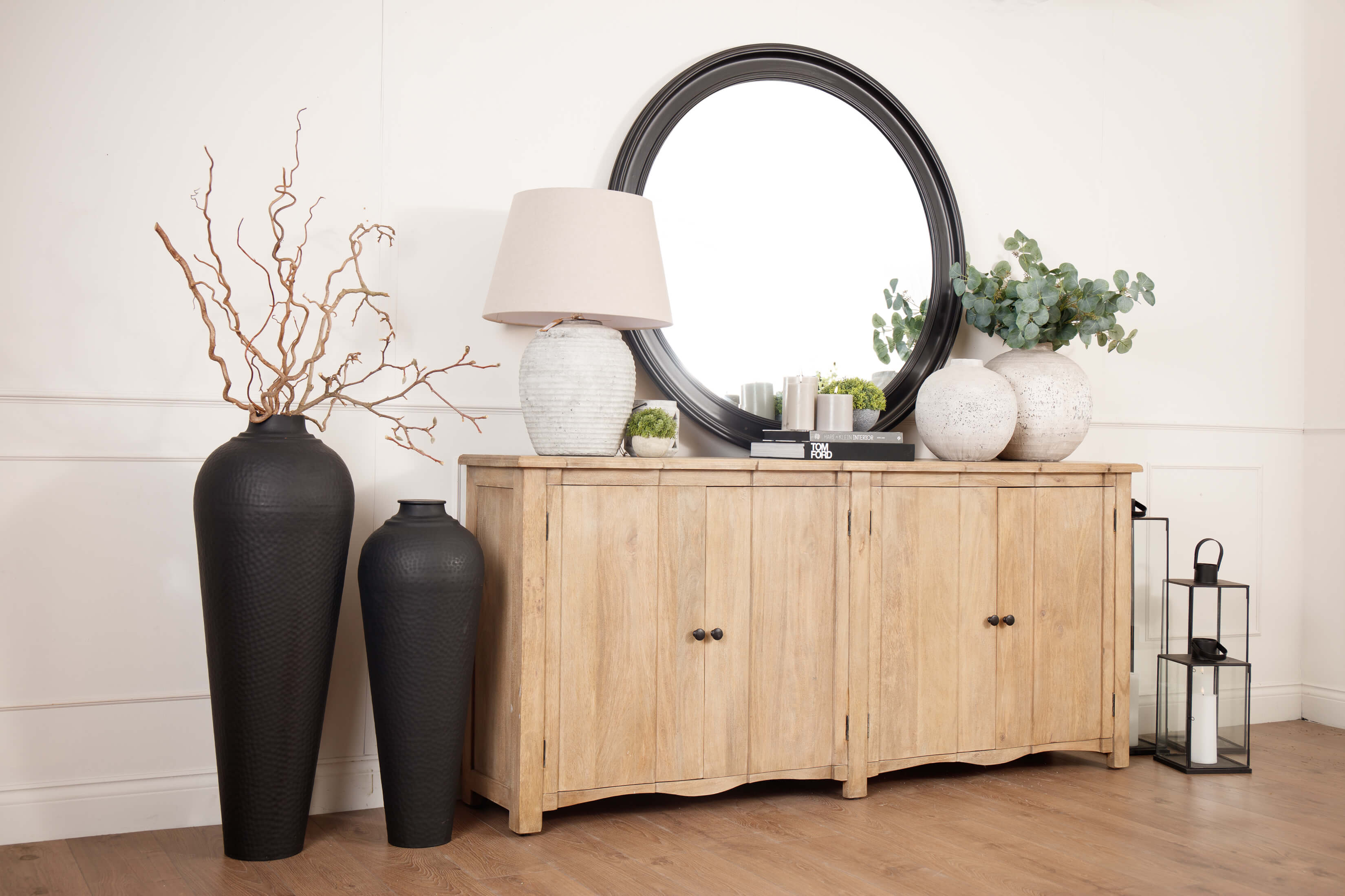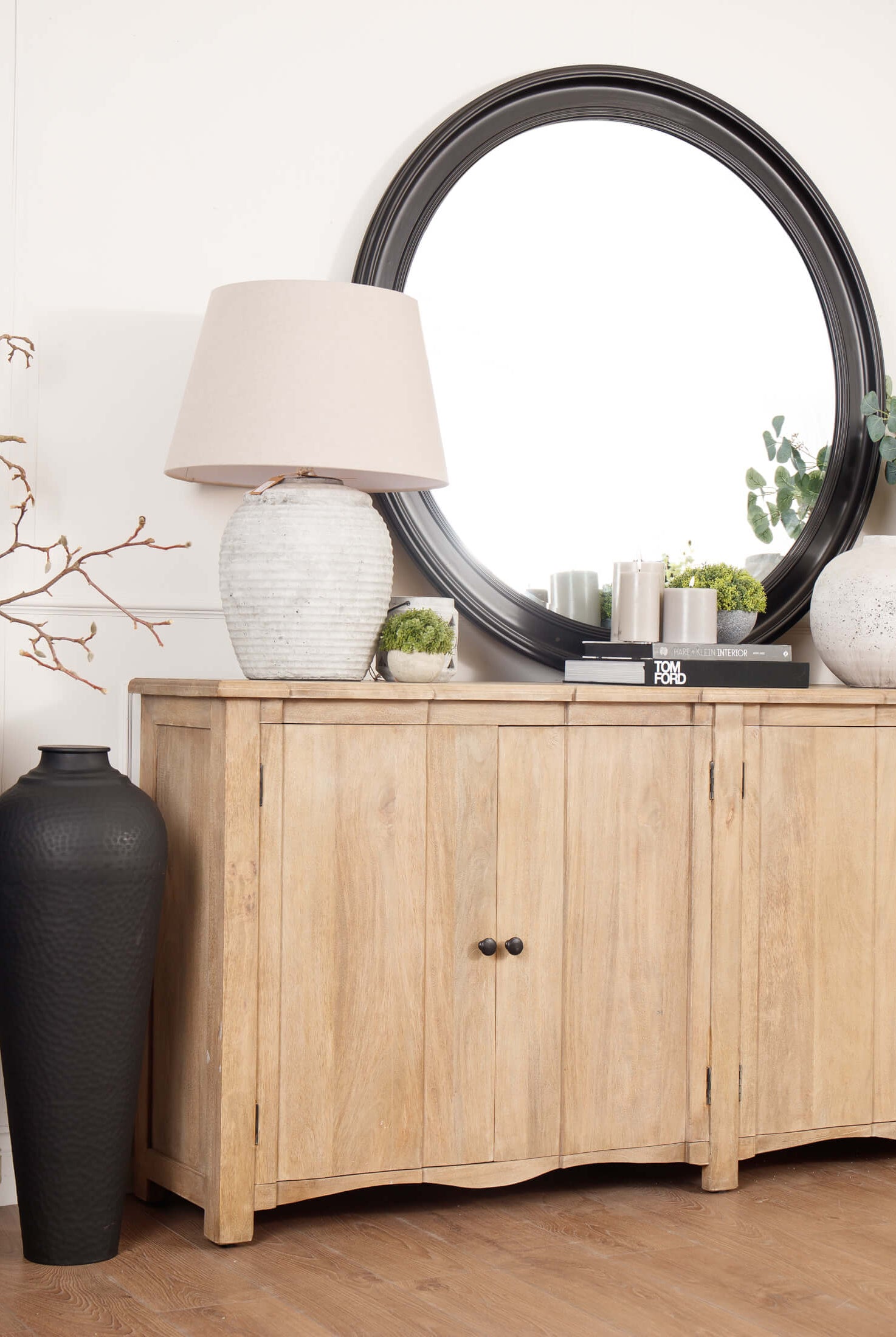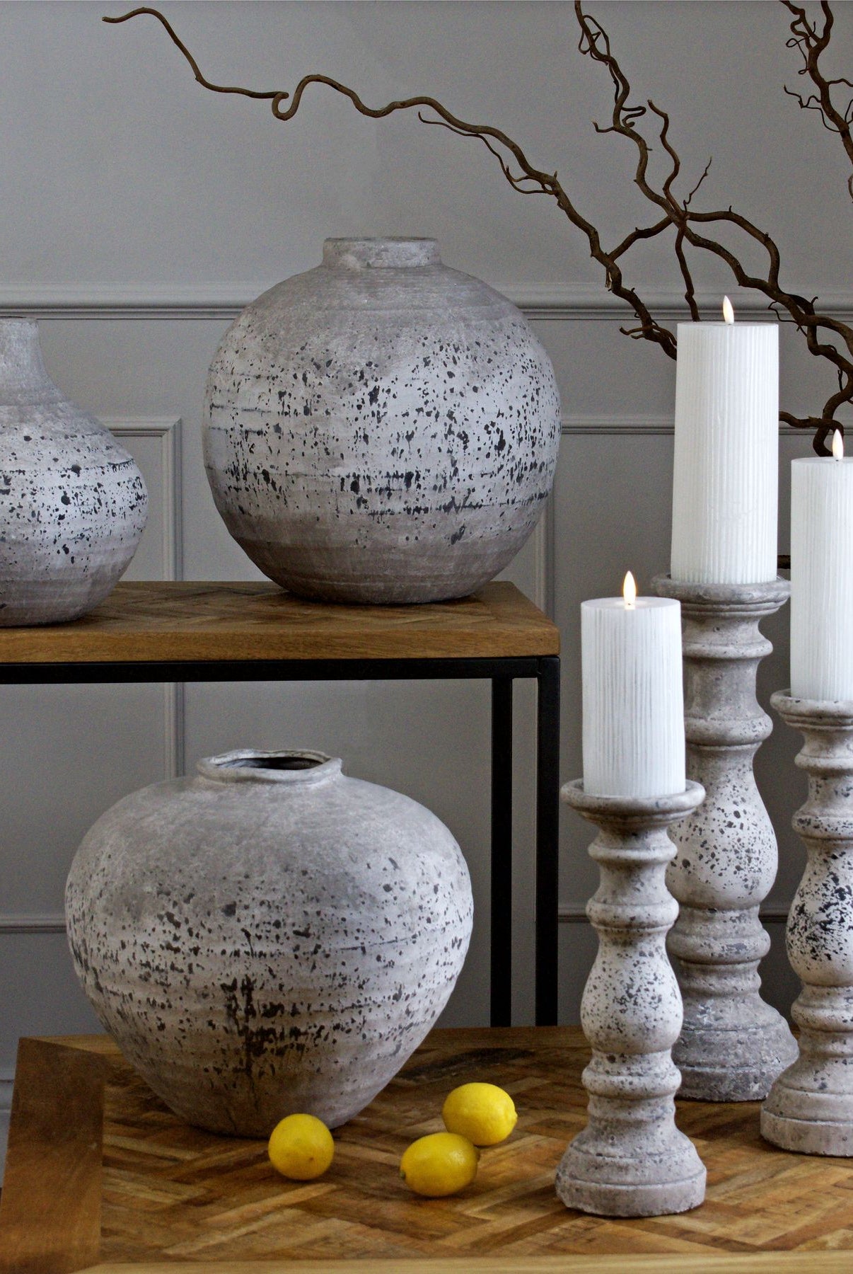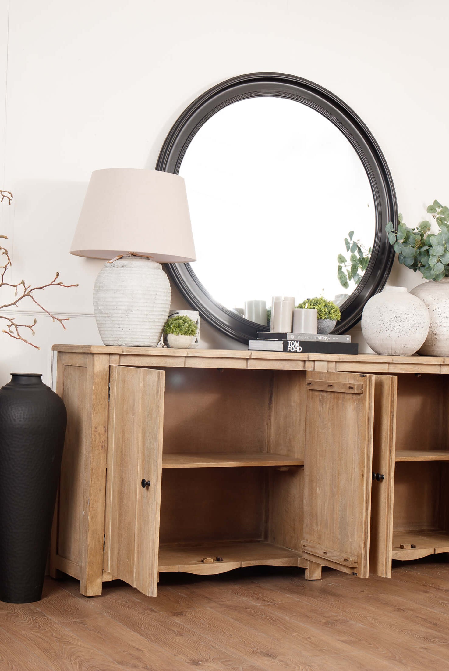 Welcome timeless charm into your dining space with our Sutton collection. Featuring a beautifully crafted round wooden table paired with upholstered dining chairs in a soft, neutral tone, this setting is all about understated elegance and inviting warmth. The look is grounded in earthy textures and elevated with sculptural candleholders, delicate glassware, and graceful floral accents. Soft, filtered light through sheer curtains creates a calm, serene atmosphere, perfect for intimate dinners or relaxed gatherings.