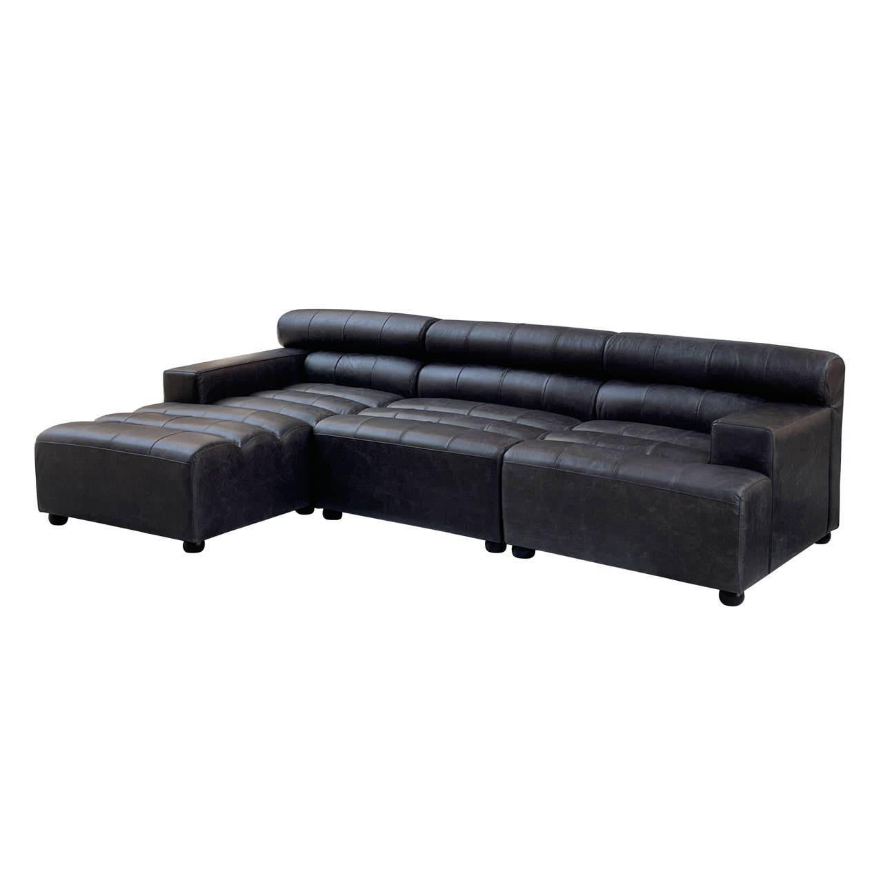 Introducing our Brooks left arm seat, exquisitely upholstered in genuine leather with an elegant distressed slate grey finish. The sophisticated channel tufting adds depth and style, while the durable and eco-friendly rubber wood feet provide robust support. This piece seamlessly combines elegance and sustainability, making it a perfect addition to any refined living space.
