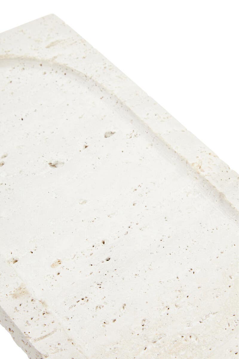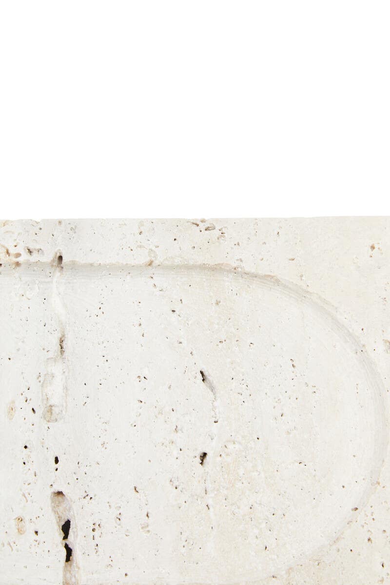 Introducing our Cove tray, a luxurious addition to any coffee table. With its rectangular outline and flat inner surface, this tray is designed to make a sophisticated statement. Expertly crafted from premium travertine, it showcases intricate detailing and texture, offering a timeless elegance that enhances any decor.
