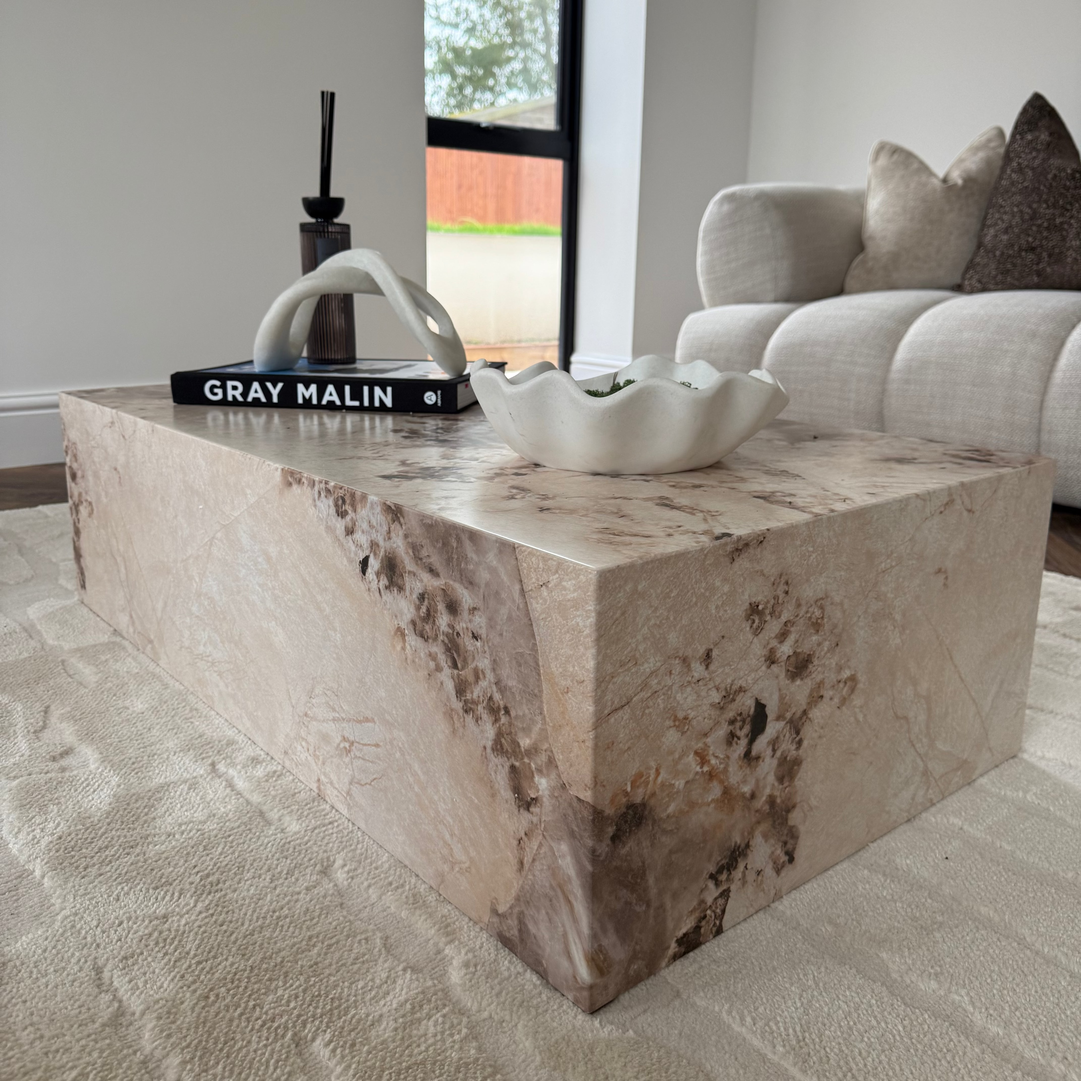 The Nysa Coffee Table showcases a captivating Pandora marble effect in soft, neutral tones that bring effortless sophistication to any interior. Its elegant design adds a refined touch of modern drama, making it a standout centerpiece in any room. For a harmonious and elevated aesthetic, pair it with other pieces from this stunning collection.