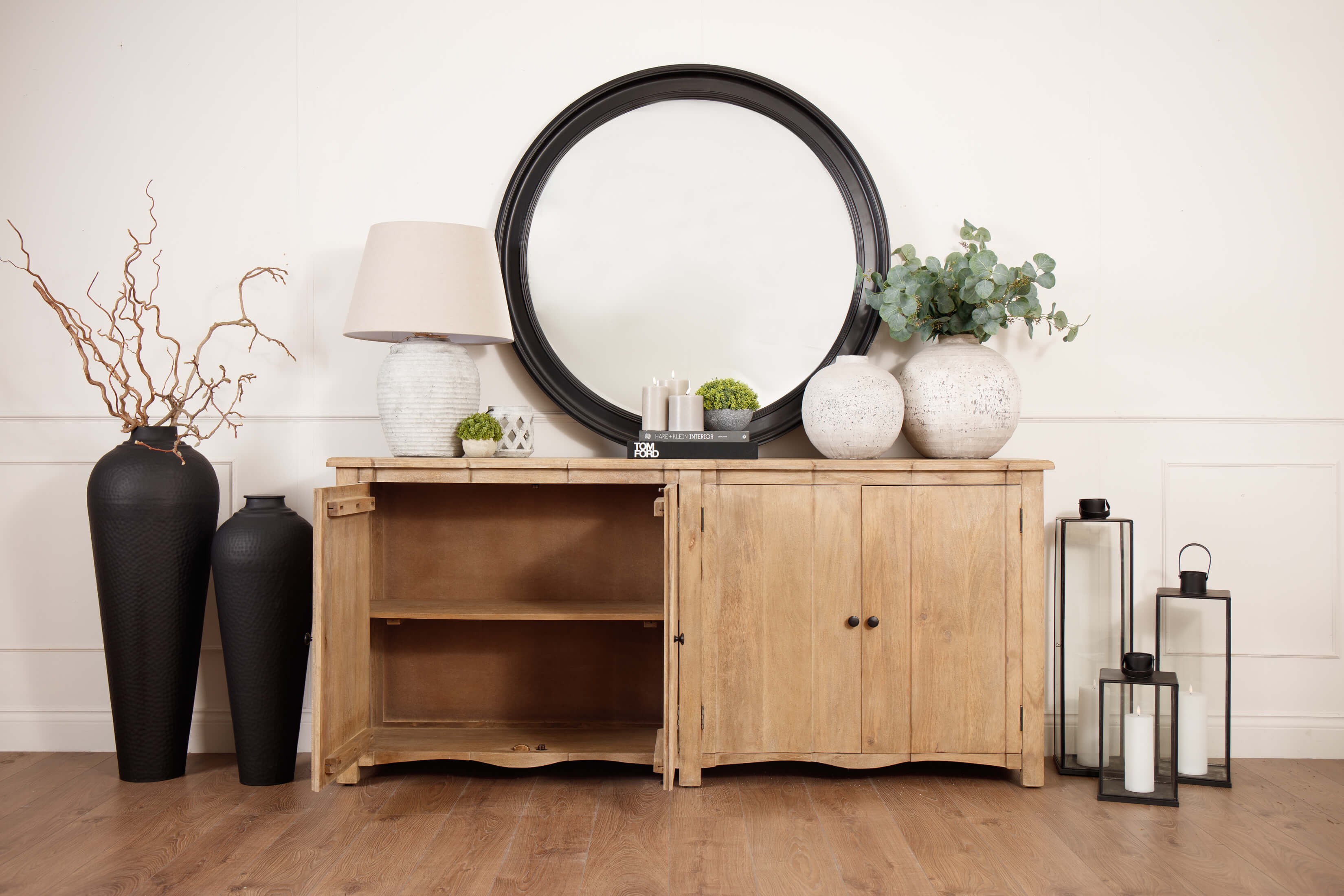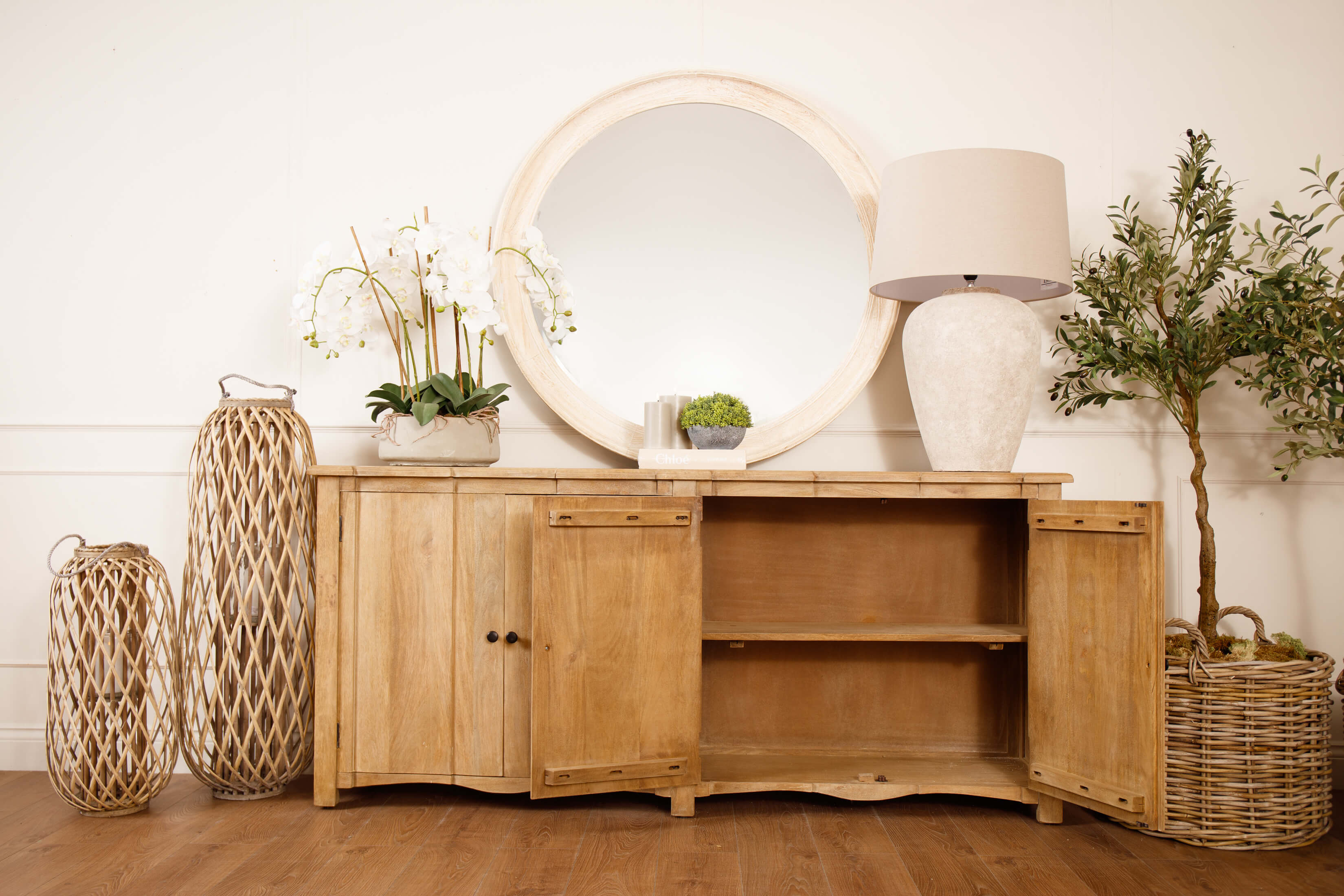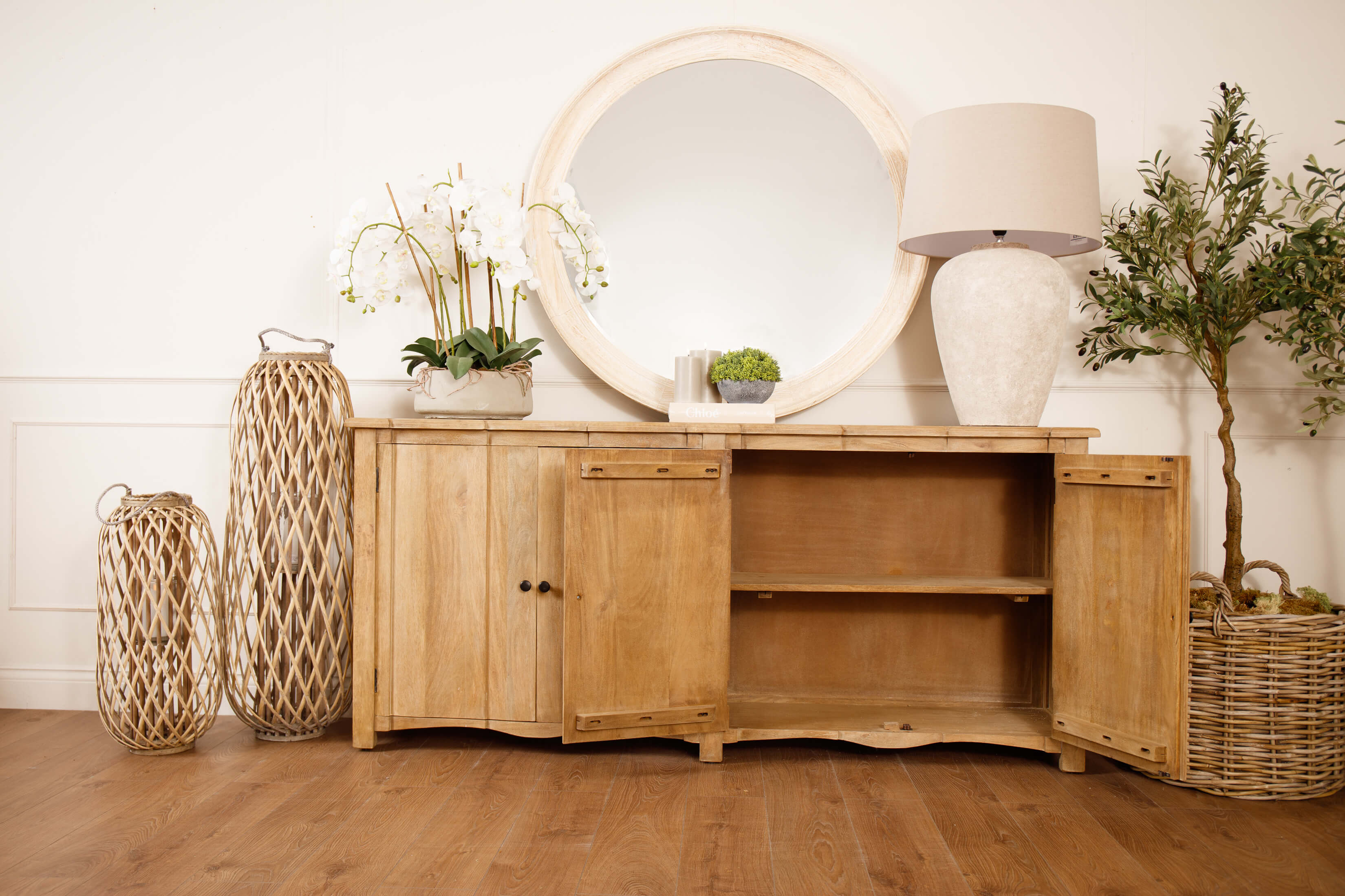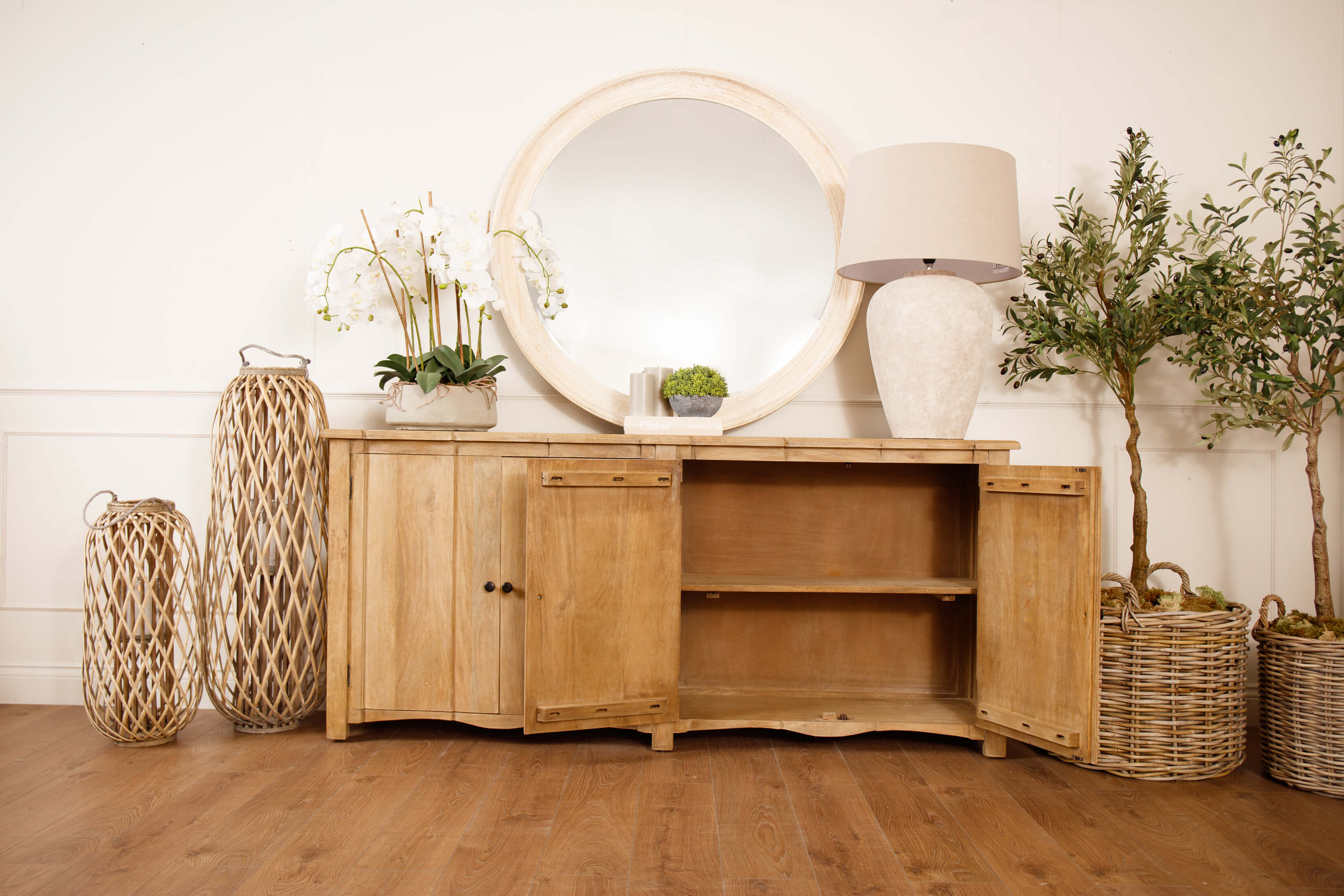 Introducing the Witley, 4-Door Sideboard, a harmonious blend of timeless elegance and contemporary functionality. Crafted with meticulous attention to detail, this stylish sideboard boasts abundant storage space concealed behind an elegant, handcrafted hardwood exterior. The quadruple-fronted cupboard, complete with an internal shelf, ensures practical organisation. Evoking classic French style, the Copgrove collection seamlessly marries tradition with modern aesthetics. Its washed, bleached finish and black ironwork handles add sophistication, making it adaptable to evolving home accessories. Each piece is individually handcrafted from hardwood, showcasing bespoke design and enduring quality. Elevate your home with this distinguished collection that stands the test of time.